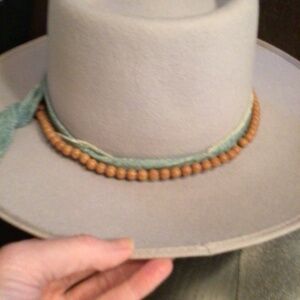 stiff wool awesome ultra light gray the lilac 57 cm adjustable with wooden bead denim band