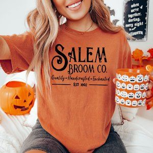NEW Salem Broom Co Witch 1692 Halloween Comfort Colors Graphic Fall Tee Shirt