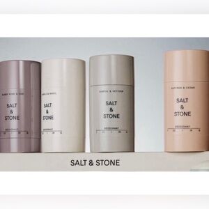 Explore the Salt & Stone Mini Deodorant Discovery Set. Includes four deodorants in white, cream, light green, and tan.