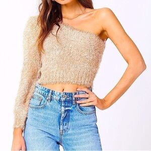 NEW Saltwater Luxe Women’s Ronan‎ Sweater One Shoulder in Gold Shimmer Approx XS