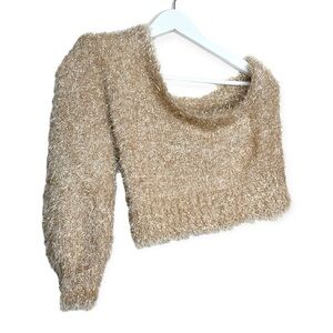 𝅺Saltwater Luxe women’s Ronan sweater in a gold shimmer color. There are no brand, size or material tags so please see measurements below for an accurate fit. Approximate size is an XS.