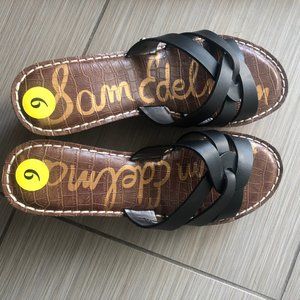 Sam Edelman Black Leather Cork Wedge Sandals slide on! New without tags.