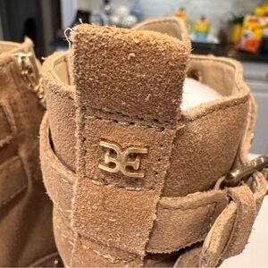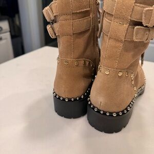 BRAND NEW! Women’s Sam Edelman suede camel color ankle boots. Zip & lace up, side buckles, studded detail, lug sole, gold metal logo on back pull. size US 8 EU 38