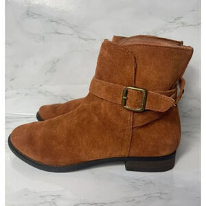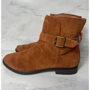 NEW Sam Edelman Malone Womens Ankle Buckle Suede Leather Flats Boots Brown Sz 6