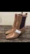 Shiny textured metallic gold finish. Pull-on chelsea style. Decorative buckled strap across vamp. Back pull tab. Squared toe. Wrapped angular heel. Cushioned insole. Western glam to the max! NEW w/o box!