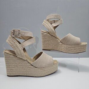 NEW Sam Edelman Vada Espadrille Wedge Sandal Platform Natural Linen Size 11