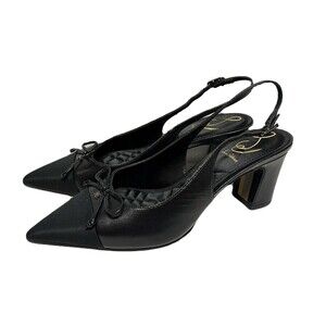 NEW Sam Edelman Womens Size 7 Black Leather Willette Slingback Block Heel w Bow