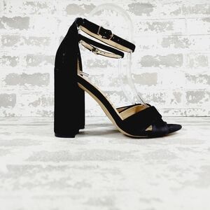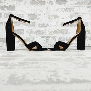 NEW Sam Edelman Yaro Black Suede Open Toe Ankle Buckle Heeled Sandals E168