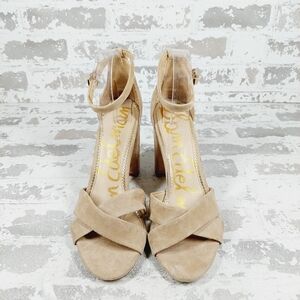 NEW Sam Edelman Yaro Cream Tan Suede Open Toe Ankle Buckle Heeled Sandals E607