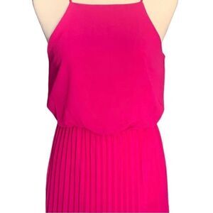 summer, magenta, cocktail, sleeveless, wedding guest, work, professional, pleated