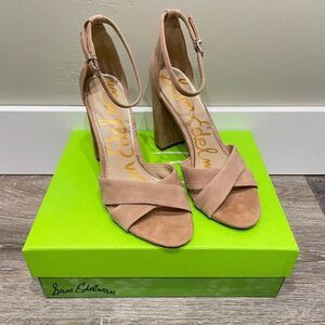 NEW Sam Edelman Yancy Block Heel Ankle Strap Sandal Caramel Suede - Size: 10