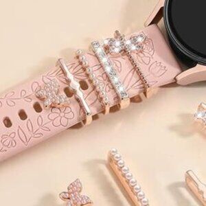 Engraved band with charms for samsung galaxy watch band. Comes with sparkling metal butterfly themed decorative charms