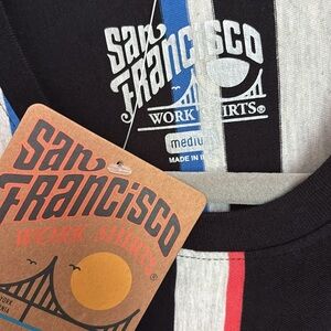 NEW San Francisco Black T-Shirt Multicolor Stripes Y2K retro tee Size Medium