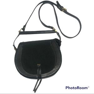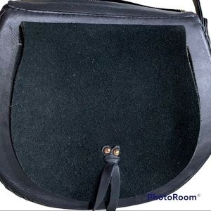 Exterior~front suede pocket with Tassel~back exterior large slip pocket with Sancia logo