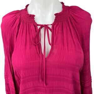 NEW Sanctuary Evereve Pink Tie Front V-Neck Long Sleeve Peasant Blouse Top Size L