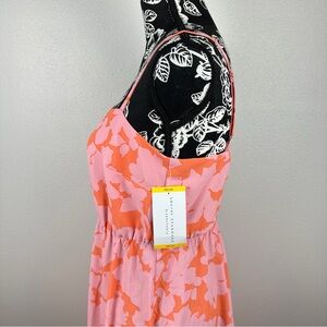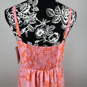 NEW Sanctuary Social Standard Pink/Orange Floral Midi Smocked Back Dress- Medium