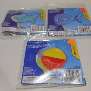 Dive into summer fun with this vibrant lot of three Sand 'N' Swim beach ball, accompanied by two inflatable kick boards designed to help you glide through the water. Each item is adorned with an array of bright, cheerful colors that are sure to make a splash and stand out at the pool or beach. Crafted for enjoyment and durability, the round beach ball is perfect for classic beach games or lounging on the shore. The kick boards feature playful fish designs, adding a touch of whimsy to your aquatic adventures. Whether you're planning a family outing or a day with friends, this set promises a delightful water experience. All my items are shipped the same day that payment is received from a clean, smoke free, home!