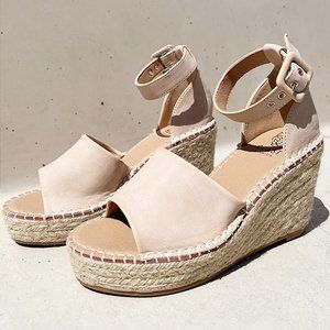 NEW Sand Nude Faux Leather Ankle Buckle Strap Espadrille Platform Wedge Sandals
