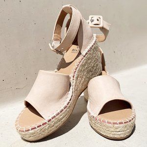 NEW Sand Nude Faux Leather Ankle Buckle Strap Espadrille Platform Wedge Sandals
