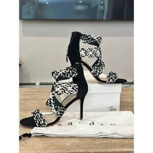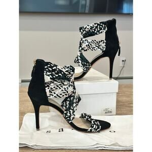NEW Sandro Agate Vert Sapin Green Black Woven Strap Open Toe Heel Sandal 39