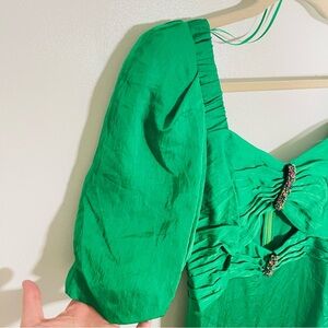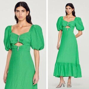 NEW Sandro Falbala Dress Green Rhinestone Embellishments Resortwear Vacation
