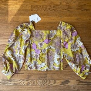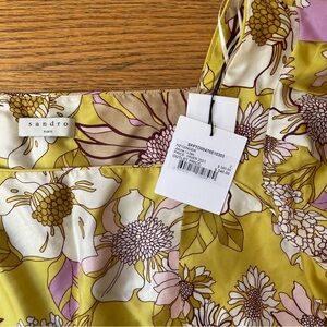 NEW Sandro Paris Silk Ginger Blouse Yellow White Floral Size 2 NWT