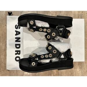 NEW Sandro Rhinestone Hook and Loop Sandals Black size 36 / 5.5