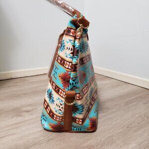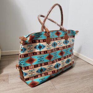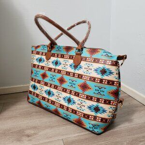 NEW Santa Fe turquoise vegan leather weekender tote bag large Western Country
