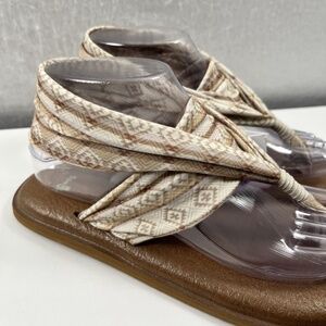 NEW Sanuk Yoga Sling 2 Tan Tribal Strap Yoga Mat Flip Flop Sandal Women's Size 8