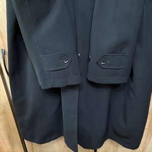 New stylish long black men's trench coat from Sanyo size 42 features a lightweight design suitable for winter, fall, and spring seasons with a removable down liner.