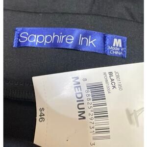 NEW Sapphire Ink Black Faux Leather Trim High Rise Skinny Trousers Pants Size M Size: M Condition: New with Tags Rise: 10” Waist: 31” Inseam: 29” *Measurements are taken lying flat. We double the flat lay measurements of the waist. **The mannequin is a size small / plus size mannequin is a size extra large.