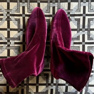 Beautiful Sarah Flint Velvet Sock Booties. The dark pink color is fabulous to perk up any outfit.