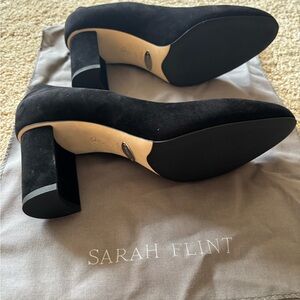 Chic black suede pumps by Sarah Flint. Timeless style with a smooth finish.