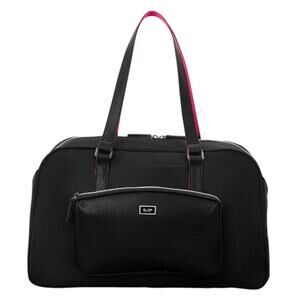This sleek black and hot pink functional bag is perfect for your next getaway with its convertible design -- wear it as a shoulder bag, crossbody (removeable strap), or carry it by the handles