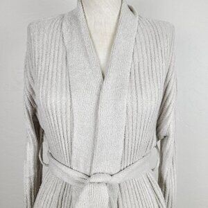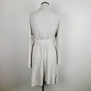 NEW Saranoni Robe M Beige Ribbed So Soft Tie Waist Longline Wrap Lounge Cardigan