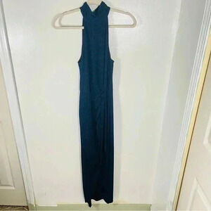 NEW Saylor Aida Halter Bodycon Dress Dark Blue Metallic Cocktail Wedding Stretc