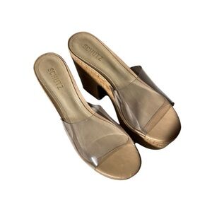 🌻NEW Schutz Dalle Cutout Transparent Cork Sandals Size 10