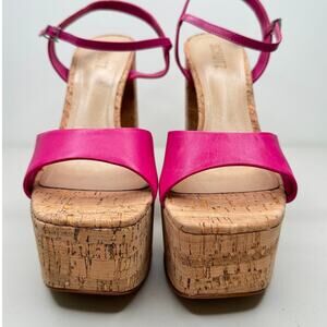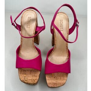 NEW Schutz Glayce Nappa Leather Cork Sandal Pump Heels Platforms, Hot Pink, 10