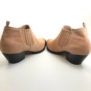 Brand new without a box. Never worn. Color: honey beige Nubuck upper Leather sole Pull-on style Block heel Pointed toe There are a dirt marks as seen in the pictures. I have not tried to remove them. Please see pictures.
