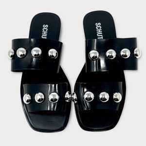 NEW Schutz Lizzie Studded Rubber Jelly Slide Sandal in Black Size 6