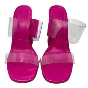 NEW Schutz Victorie Fuchsia Hot Pink Block Heel Clear Transparent Strap Heels