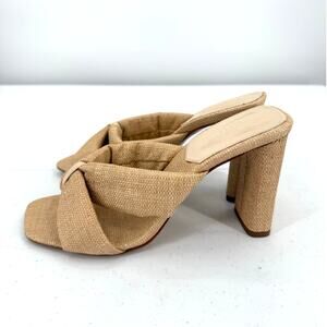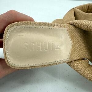 NEW Schutz Women's Fairy Eggshell Straw & Nappa Leather Mid Heel Sandal Size 8.5