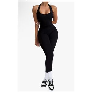 NEW Scoop Neck Halter Sleeveless Backless Bodycon Jumpsuits Ribbed L