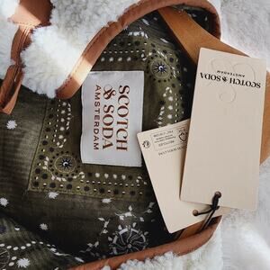 NEW Scotch & Soda Short Teddy Toggle Jacket in Cream