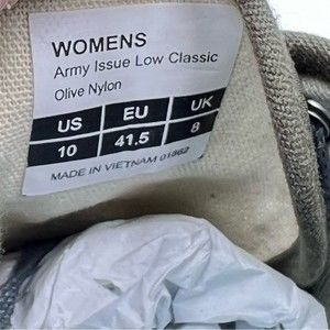 New without box, SeaVees women's Army Issue low cut classic olive green nylon lace up sneakers / shoes. Women's size 10.