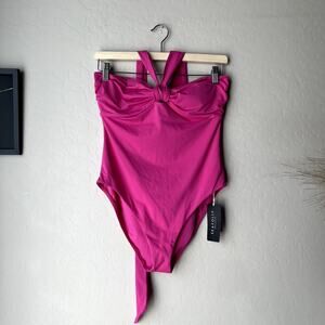 NEW Seafolly Collective Hot Pink Halter Bandeau One Piece Swimsuit Size 10