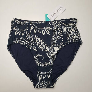 NEW Seafolly Folklore High Waisted Swim Bottom US 6 Navy White NWT