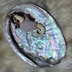 NEW - 53x20x5mm White Pearl Tibetan Golden Seahorse