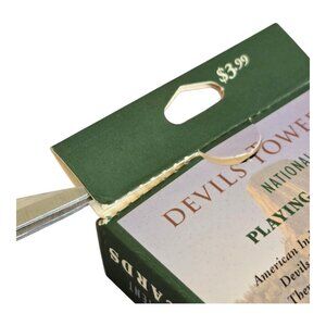 This is a brand new, sealed pack of playing cards that are a souvenir set from Devil's Tower in Wyoming. The pack comes in its original box and each suit has its own unique photo. Please note in the final photo that the perforation on the exterior box has started to separate from being in storage. This has had no effect on the seal on the cards inside. Please zoom in on all photos for full details on this deck.
