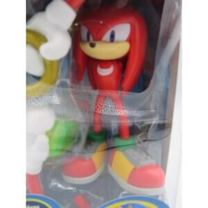 This factory-sealed Knuckles the Echidna action figure was released in 2022 by Just Toys Intl. It is part of the Buildable Figures line. Knuckles' arms snap on and are interchangeable with the parts of the other characters in the lines. These come with a power ring and chaos emerald. The box is brand new and free of major flaws.